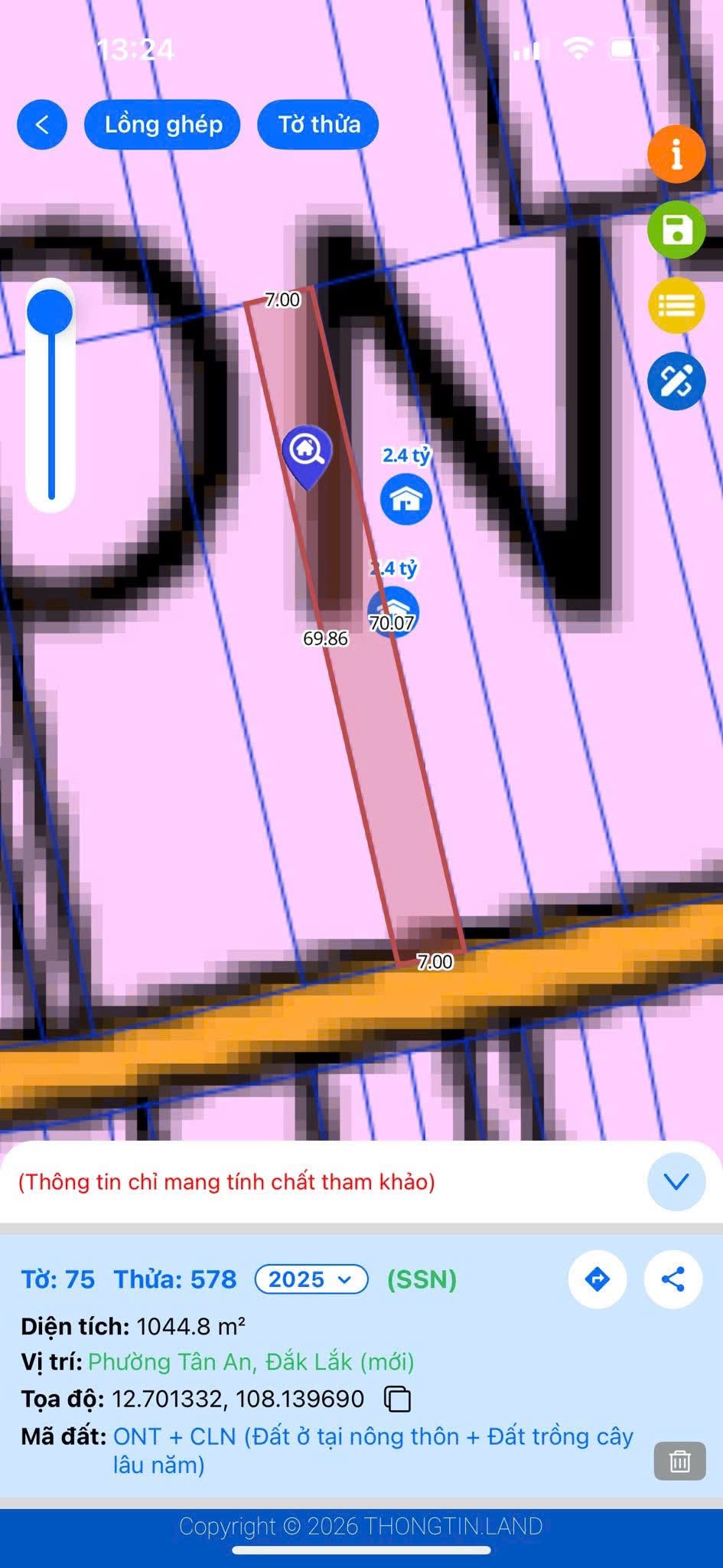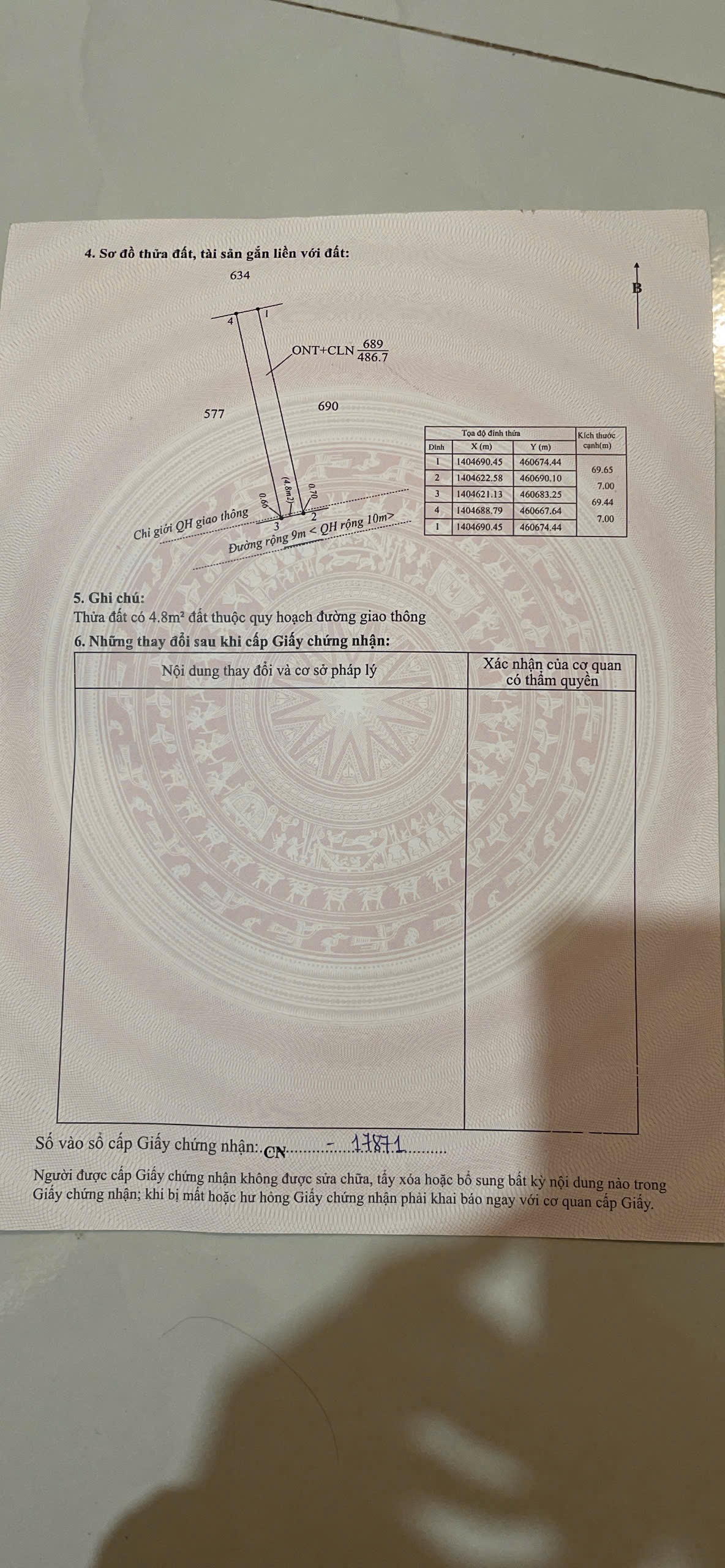 DT 7×70. Hướng nam.